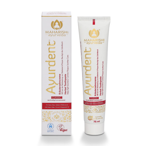 Ayurdent Zahncreme enthält nur beste, natürliche Zutaten und eine hohe Konzentration aus 17 ayurvedischen Kräutern, deren zahnpflegende Eigenschaften im Ayurveda bekannt sind. Mit Neem, Nelkenöl, Ingwer, Pfeffer und Pfefferminzöl für frischen Atem.