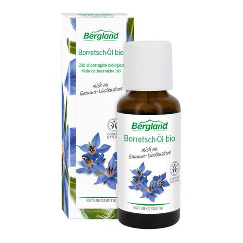 Borretsch-Öl ist eine der reichsten Quellen an Gamma-Linolensäure. Auf der Haut zeigt das Öl eine regenerierende Wirkung. Es verleiht trockener Haut Elastizität und Spannkraft.