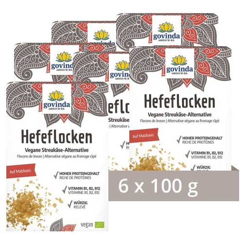 Govinda Hefeflocken sind auf Gerstenmalz basiert, was sie zum einen super würzig macht, aber auch bis zu 27 % Protein enthalten lässt sowie Vitamin B1, B2 & B12.