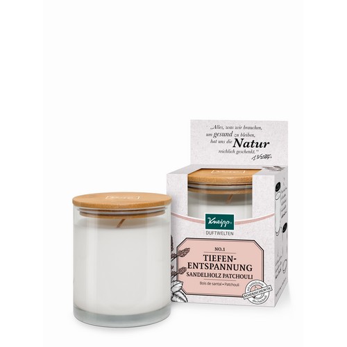 Lassen Sie sich in ferne Welten entführen! Der holzige Duft der Kneipp® Duftwelten Duftkerze Tiefenentspannung Sandelholz Patchouli mit natürlichem ätherischem Patchouliöl verzaubert die Sinne und lässt Ihren Geist zur Ruhe kommen. Duftprofil: Warm, balsamisch, holzig | Kneipp® Duftwelten – von der Natur inspiriert. Die Düfte mit natürlichen ätherischen Ölen sind nicht nur angenehm für die Nase, sondern beeinflussen auch aktiv Ihr Wohlbefinden.