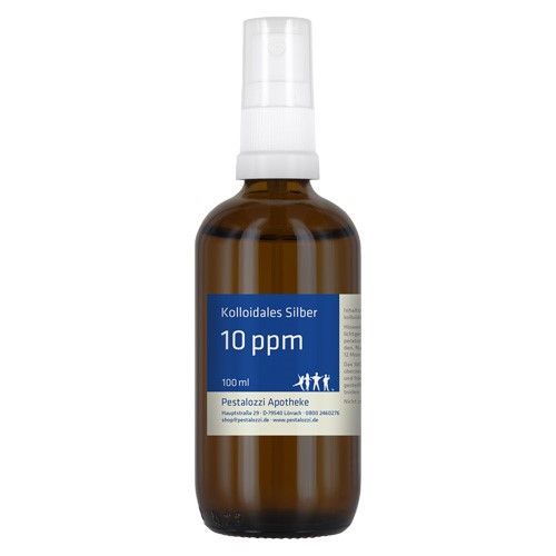 Das kolloidale Silber 10 ppm wird mit hochreinem destillierten Wasser unter qualifizierten Laborbedingungen frisch hergestellt und in einer dunklen Glasflasche geliefert. Die Herstellung erfolgt in der Apotheke unter überwachten Laborbedingungen. Das kolloidale Silber wird auf elektrolytischem Wege mit Hilfe eines entsprechenden Generators hergestellt. Dabei werden aus 99,99% reinem Silber kleinste Partikel gebildet und in destilliertem Wasser verteilt. Wir arbeiten dabei ohne Einsatz von Zusatzstoffen. Bitte beachten Sie: Kolloidales Silber ist kein Arzneimittel und daher auch ohne Angabe einer Indikation. Aus rechtlichen Gründen bieten wir daher das kolloidale Silber nur für technische Zwecke an. Nicht zum Einnehmen.