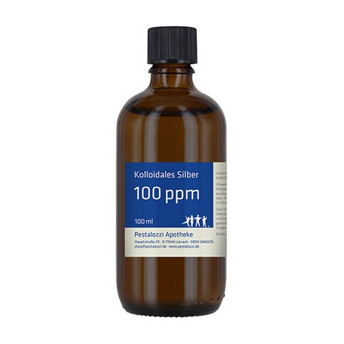 Das kolloidale Silber 100 ppm wird mit hochreinem destillierten Wasser unter qualifizierten Laborbedingungen frisch hergestellt und in einer dunklen Glasflasche geliefert. Die Herstellung erfolgt in der Apotheke unter überwachten Laborbedingungen. Das kolloidale Silber wird auf elektrolytischem Wege mit Hilfe eines entsprechenden Generators hergestellt. Dabei werden aus 99,99% reinem Silber kleinste Partikel gebildet und in destilliertem Wasser verteilt. Wir arbeiten dabei ohne Einsatz von Zusatzstoffen. Bitte beachten Sie: Kolloidales Silber ist kein Arzneimittel und daher auch ohne Angabe einer Indikation. Aus rechtlichen Gründen bieten wir daher das kolloidale Silber nur für technische Zwecke an. Nicht zum Einnehmen.