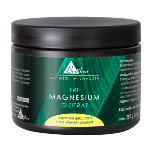 Mit Biotikon Trimagnesiumdicitrat bestellen Sie Magnesium Citrat nach Dr. med. Michalzik. Im Vergleich zu herkömmlichem Magnesium Citrat ist Tri-Magnesium-Dicitrat um ca. 50 Prozent höher konzentriert.