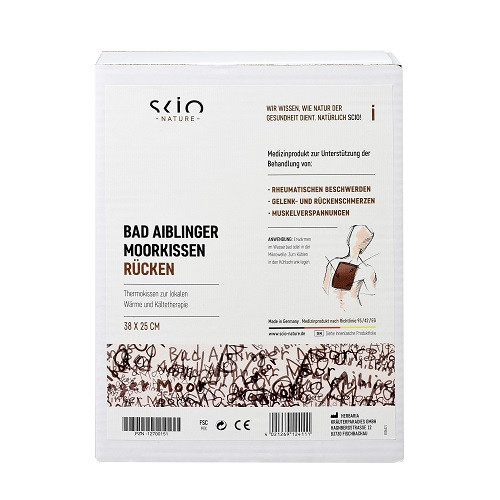 SCIO Bad Aiblinger Moorkissen Rücken ist ein Thermokissen für lokale Wärme- & Kältetherapien zur Unterstützung der Behandlung bei Rückenschmerzen, Hexenschuss, Ischias, Verstauchungen, Prellungen & rheumatischen Beschwerden. Moor besitzt die Fähigkeit, im Gegensatz zu anderen Materialien wie z.B. Thermogel oder Fango, Wärme oder Kälte langanhaltend zu speichern und sehr langsam wieder abzugeben. Das Kissen mit der Spezial-Weichfolie ist extra dünn, hygienisch, hautfreundlich und passt sich optimal an. Als Wärmetherapie angewendet, lindert die abgegebene Wärme Schmerzen, fördert die Durchblutung & dadurch die Nährstoffversorgung der Zellen und Gelenke. Durch die lang anhaltende Wärmeabgabe lockert & entspannt sich die verhärtete Muskulatur. Die Kaltanwendung mit dem Moorkissen sollte bei akuten Schmerzen und Entzündungen erfolgen, z.B. bei Verstauchungen, Prellungen oder akut entzündlichen Gelenkprozessen. Das Moorkissen hierzu mindestens für eine Stunde in den Kühlschrank legen.