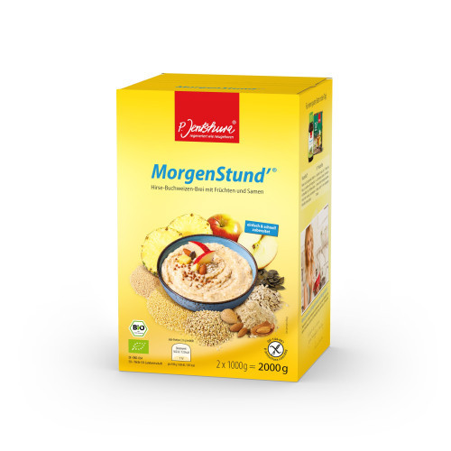 MorgenStund' bietet Ihnen dafür einen wohlschmeckenden Hirse-Buchweizen-Brei mit Amarant und Ananas, mit Apfel, Kürbiskernen, Sonnenblumenkernen und süßen Mandeln. Es ist durch ein kurzes Aufkochen leicht verdaulich und wird deshalb auch zu Beginn einer Ernährungsumstellung auf Vollwertkost gut vertragen.