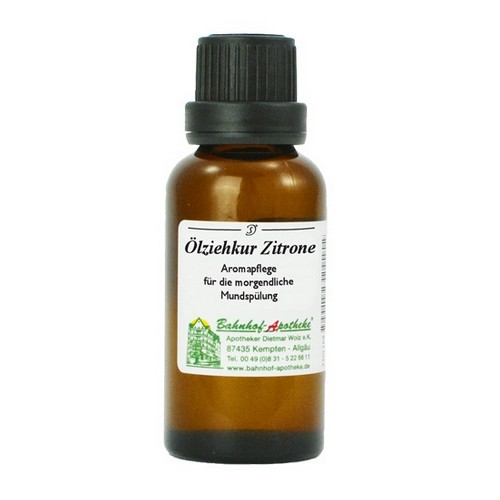 2 Esslöffel der Aromamischung im vorderen Teil des Mundes wie ein Bonbon lutschen und durch die Zähne ziehen. Nach ca. 10 Minuten wird das stark aufemulgierte Öl ausgespuckt. Danach den Mund gründlich ausspülen und die Zähne putzen.