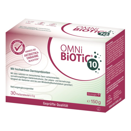 OMNi-BiOTiC® 10 enthält pro Portion 5 Milliarden Darmbakterien aus 10 verschiedenen Stämmen, die natürlich im menschlichen Darm vorkommen. In wissenschaftlichen Studien wurde gezeigt, dass sich die in OMNi-BiOTiC® 10 enthaltenen Bakterien im Darm ansiedeln und vermehren können.