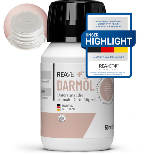 Das Darmöl kann als tägliche Ergänzung in das normale Futter gegeben werden. Vor Gebrauch gut schütteln!