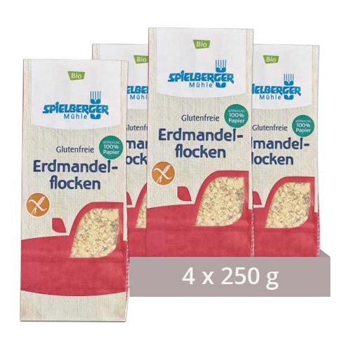 Erdmandeln sind von Natur aus glutenfrei. Damit der Glutengehalt der glutenfreien Erdmandelflocken garantiert unter 20 ppm (20 mg/kg) Gluten liegt, werden sie sorgfältig getrennt von allen glutenhaltigen Produkten gehalten und mehrmals analysiert. Dafür achtet die Spielberger Mühle auf streng getrennte Warenströme und separate Produktionslinien. Erst wenn auch die letzte Analyse die Glutenfreiheit bestätigt, verlassen die Produkte das Haus. Für eine ökologische und sichere Verpackungslösung für die glutenfreien Produkte, setzt der Hersteller auf Pergaminpapier. Dieses ist sehr dicht und besitzt eine Fettbarriere. Bei den Beuteln für die glutenfreien Produkte wird ein kompletter Innenbeutel aus diesem Papier verweendet. Er bietet ausreichend Schutz vor nachträglicher Verunreinigung. Weil er aus 100% Papier besteht, kann er problemlos über das Altpapier entsorgt werden.