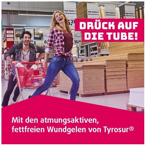 * Tyrosur® Wundheilgel/Wundheilpuder ist ein Wundbehandlungsmittel. Zur lindernden Behandlung von kleinflächigen, oberflächlichen, wenig nässenden Wunden mit bakterieller Superinfektion mit Tyrothricin-empfindlichen Erregern wie z. B. Riss-, Kratz-, Schürfwunden.