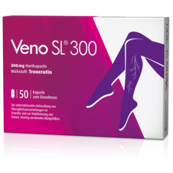 Mit Veno SL® 300 machen Sie es Ihren Venen jetzt leichter. Dank des enthaltenen Wirkstoffs Troxerutin, beugt Veno SL® 300 Flüssigkeitsansammlungen im Gewebe vor, verbessert die Durchblutung und schützt Ihre Beine vor der Entstehung von Besenreisern.