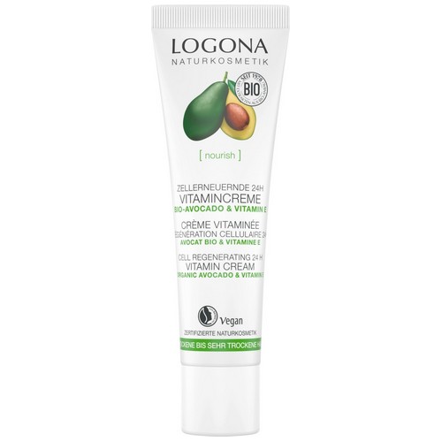 Die LOGONA ZELLERNEUERNDE 24H VITAMINCREME schützt die Haut vor Umweltstress und unterstützt die Erneuerung der Zellen. Die extra reichhaltige Formulierung mit Bio- Avovado, den Vitaminen C und E enthält besonders viele Omega-Fettsäuren und hilft damit der Haut sich sorgfältig zu regenerieren.